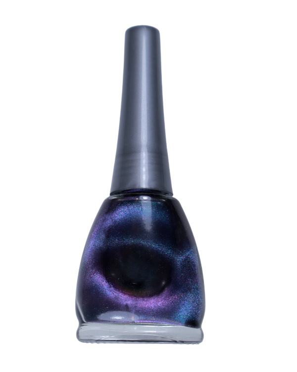 Agita bien antes de usar, para obtener mejores resultados desengrasa tu uña, aplica base fortalecedora, una base de esmalte negro o de color oscuro, una capa generosa de esmalte Nébula y luego brillo. Aplica el brillo cuando el esmalte esté seco o deberás poner de nuevo el imán porque las partículas se dispersarán.
