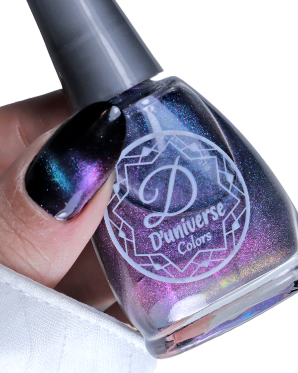 Dos efectos en uno, esmalte ojo de gato y camaleón que cambia de color dependiendo la iluminación.