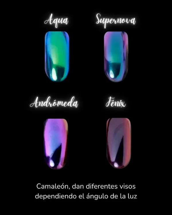 Cada tono refleja la luz como un portal a otra dimensión, con acabados metálicos, tornasolados y holográficos que cambian según la iluminación de tu día a día.