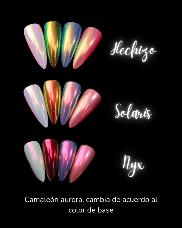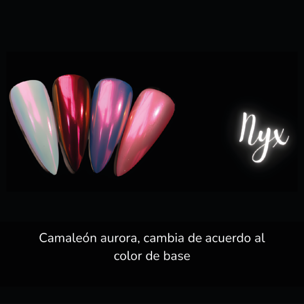 Nyx: Un efecto llamativo que combina tonos rosados, naranjas y verdes en un acabado etéreo y femenino, como la luz suave de una aurora boreal.
