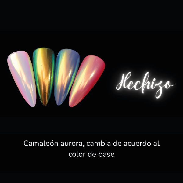 Hechizo: Un encantamiento de tonos verdes y amarillos suaves, cambia de color dependiendo la base que utilices.