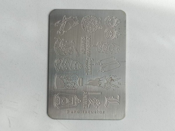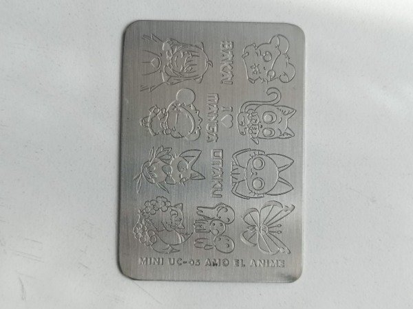 Placa metálica Marca Uñas Coquetas, dos en una (tiene diseños por ambos lados de la placa).
