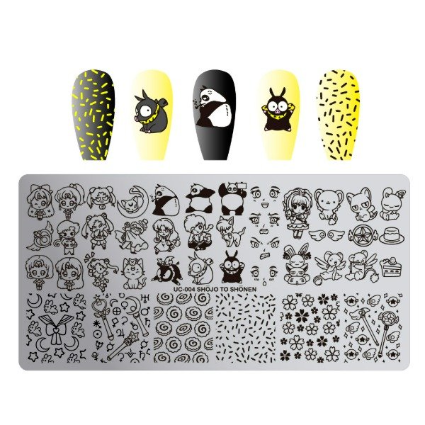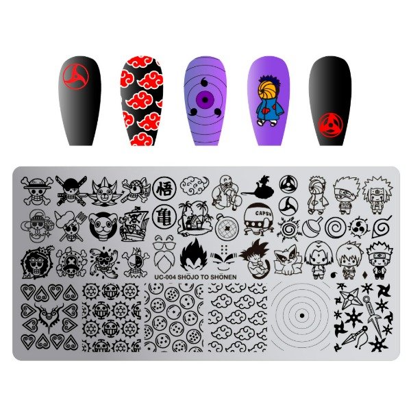 Placa metálica Marca Uñas Coquetas, dos en una (tiene diseños por ambos lados de la placa).