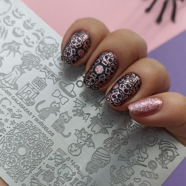 Placa metálica Marca Uñas Coquetas, dos en una (tiene diseños por ambos lados de la placa).