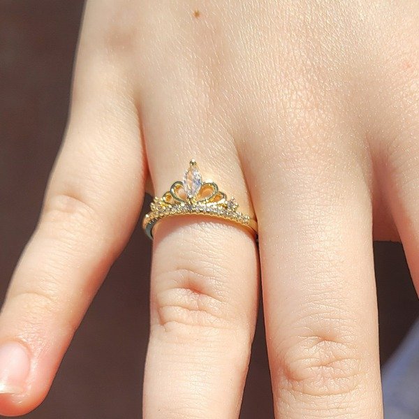 Siéntete como de la realeza con el Anillo "Corona de Cristales". Este elegante diseño abierto rinde homenaje a la majestuosidad con una silueta de corona bellamente detallada. La pieza central está adornada con un deslumbrante pavé de pequeños cristales que se extienden sobre el contorno superior e inferior, enmarcando una hilera central de cristales más grandes, creando un brillo espectacular y digno de una reina.