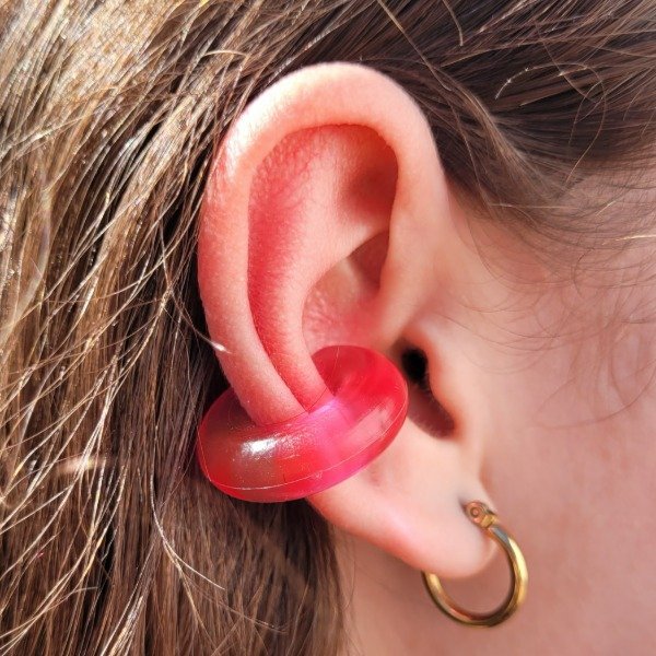 Marca la diferencia con el atrevido Ear Cuff de Silicona "Disco Neón". Este accesorio rompe el molde con una forma plana y un color electrizante, ideal para quienes aman la estética Y2K, rave o club kid, sin necesidad de perforaciones.
