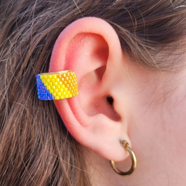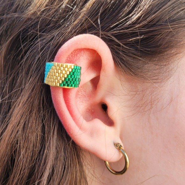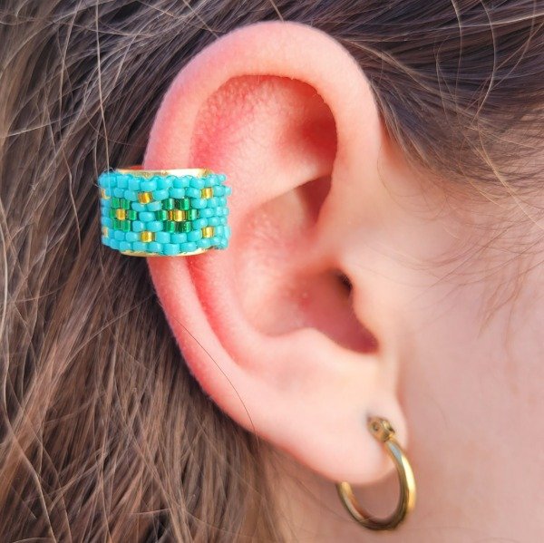 Lleva la tendencia boho-chic a tu oreja con nuestro exclusivo Ear Cuff Artesanal Tejido con Mostacillas. Esta pieza es una joya única que combina la delicadeza del trabajo manual con un diseño moderno y llamativo.